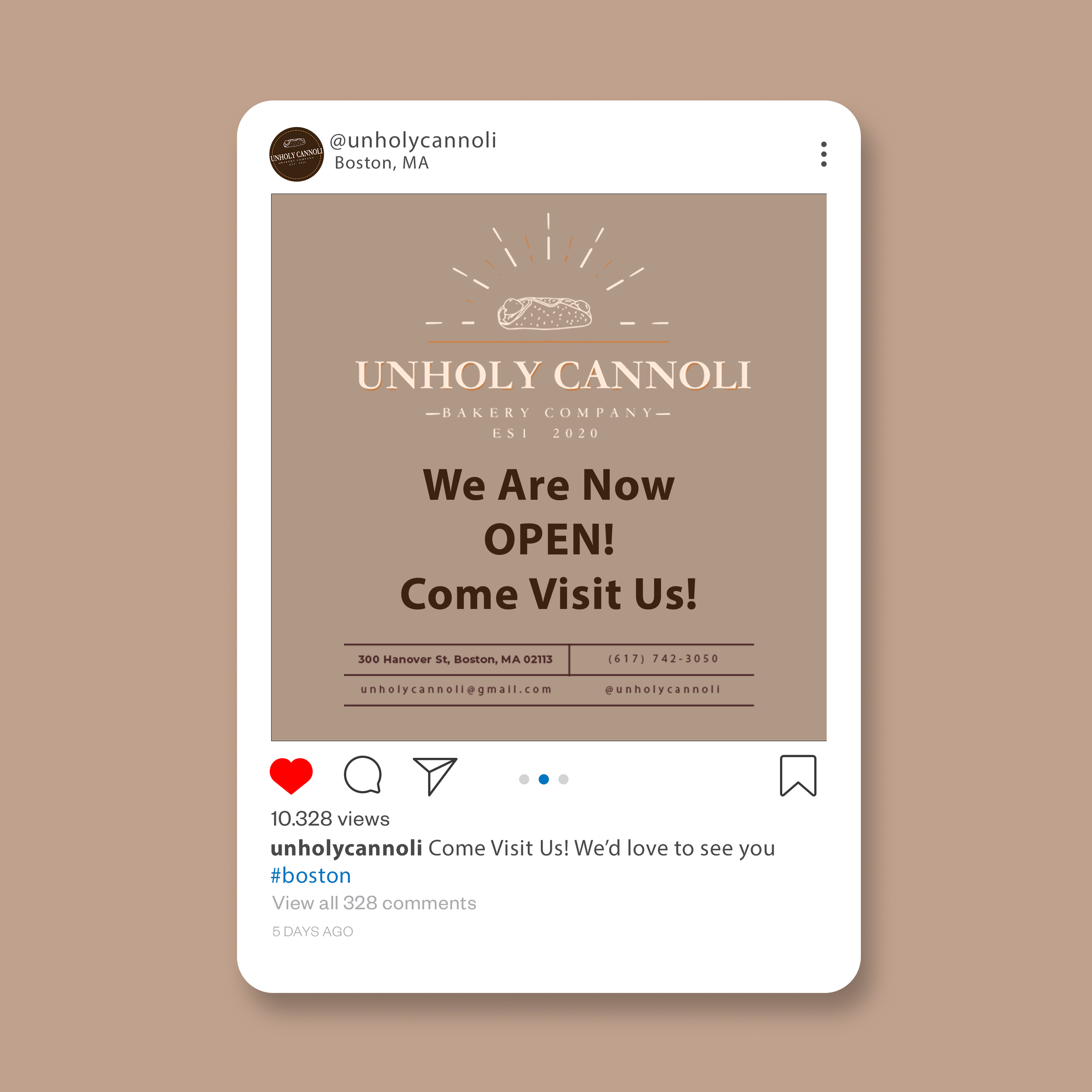 The goal of the Unholy Cannoli food truck project was to develop a comprehensive brand system that brings bold personality and cohesion across multiple touch points. From the menu and staff uniforms to the truck wrap, to-go packaging, and beyond, each element was carefully designed to feel unified while avoiding unnecessary repetition. This project challenged me to balance consistency with creative variety throughout the brand experience.